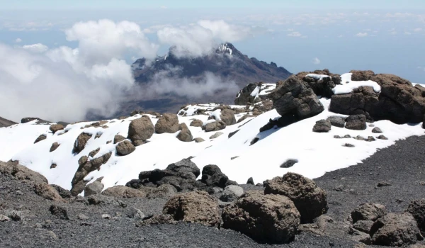 After breakfast you will start your hike towards Lava Tower, a famous landmark on Kilimanjaro. The path is steep and rocky, with views of Mt. Meru, Kilimanjaro's little sister, punching her peak through the clouds. Tent camp on day three of the Umbwe route.From Lava Tower you turn towards the Western Breach, a steep climb to Arrow Glacier camp (4800m). This is taxing and symptoms of altitude sickness might become noticeable. The campsite is spectacular. Vegetation has now all but disappeared, leaving only rock and scree in varying shades of brown and black. The campsite is very cold and you need to be prepared.